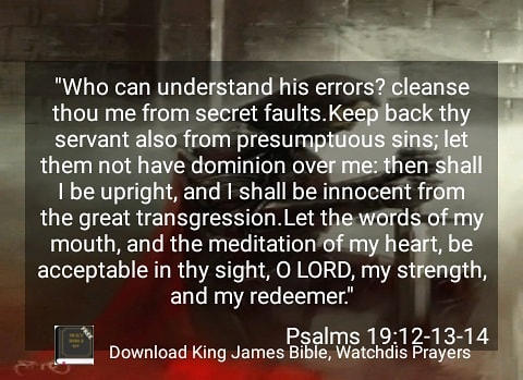 13 Keep your servant from deliberate sins. Psalm 1912-13 English Standard Version 12 Who can discern his errors. Acquit me of hidden faults.